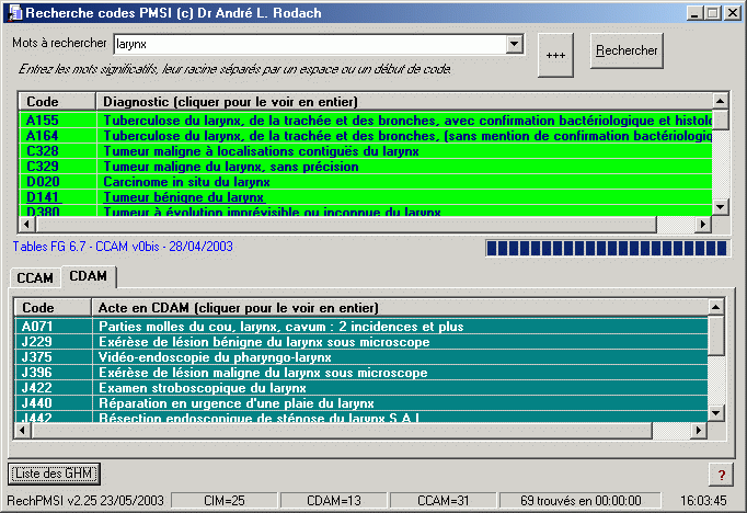 par contre très simple d'emploi, léger et très rapide dans sa recherche de codes CIM ou CDAM (Catalogue Des Actes Médicaux).