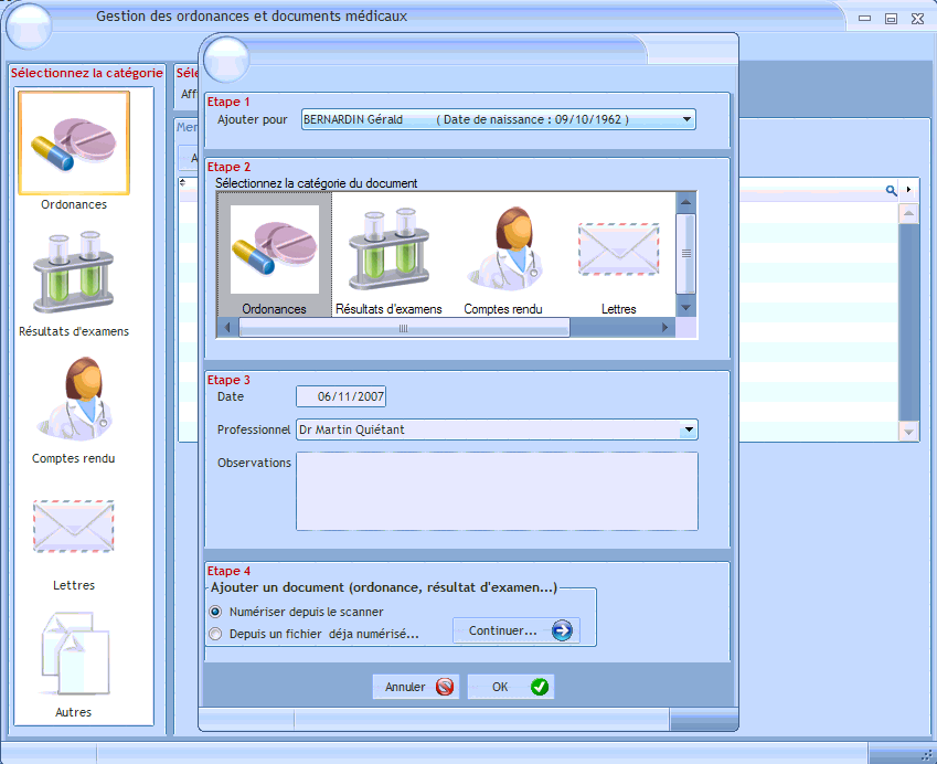 Le logiciel permet d'intégrer différents documents comme les ordonnances, les